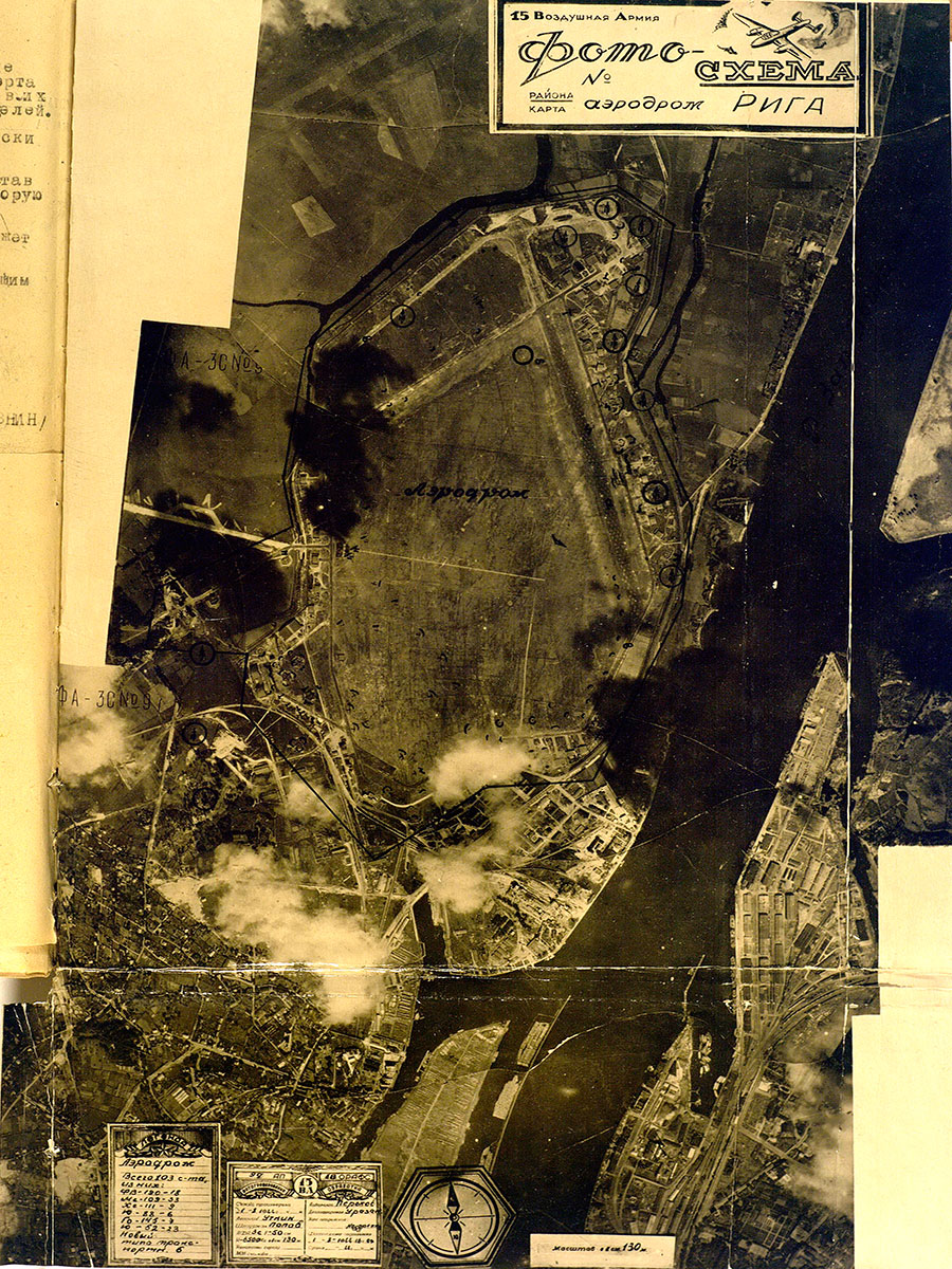 Фотосхема аэродрома Рига. На момент съемки 1 августа 1944 года на аэродроме находились 103 самолета противника.