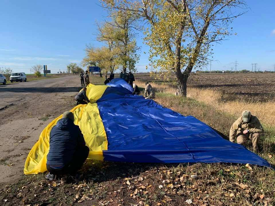 Из оккупированной Марьинки в сторону Донецка вчера, 13 октября, был запущен 25-метровый флаг Украины и ящик с открытками, в которых послание жителям с «важной информацией и словами поддержки».