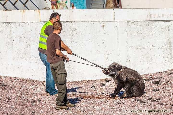 Дикий кабан прогулялся по пляжу: напал на крымчанина, съел колбасу и пошёл купаться в море (ФОТО, ВИДЕО)