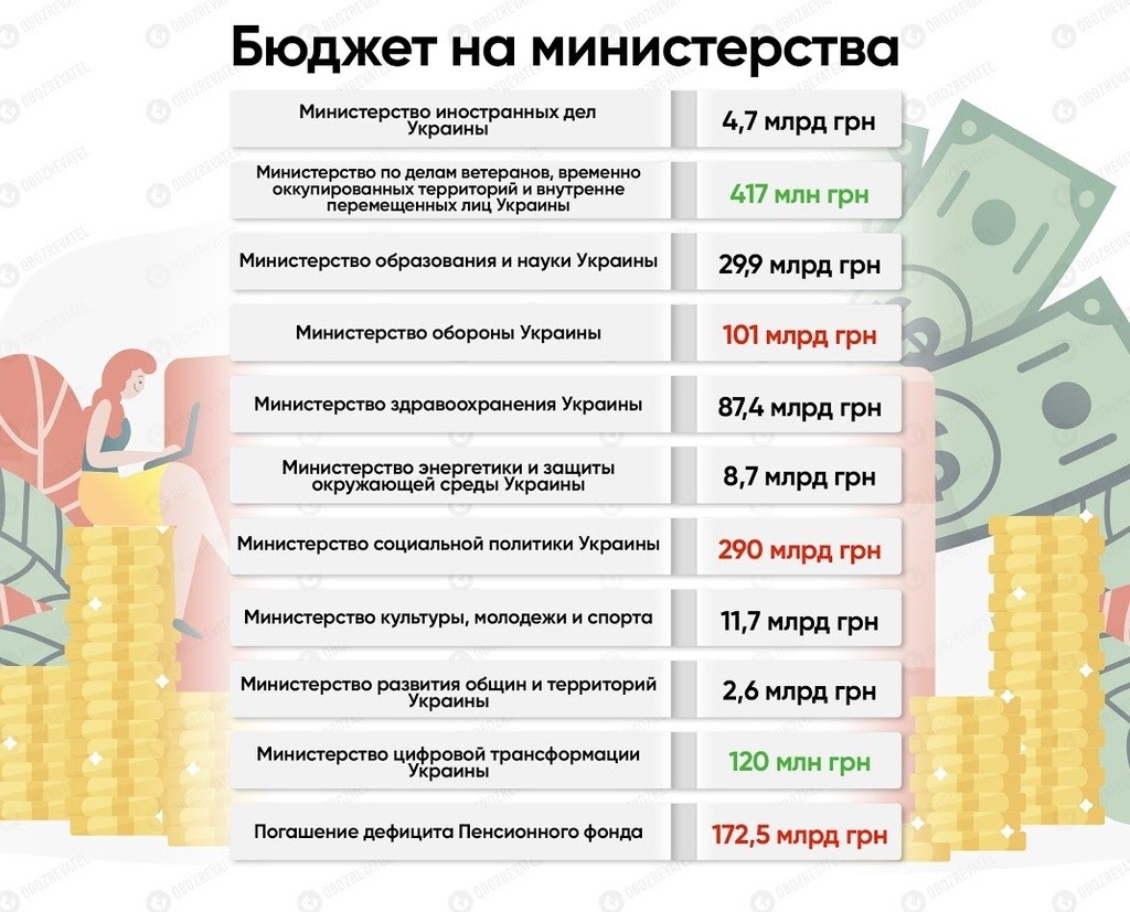 Самые большие затраты на 2020 г. Кабинетом министров Украины предусмотрены по линии Министерства социальной политики — 290 млрд грн. Но при этом на предоставление ежемесячной адресной помощи «внутренне перемещенным лицам (ВПЛ)» (т. е. беженцам) для покрытия расходов на проживание выделяется 3 млрд 042 млн 600 тыс. грн.