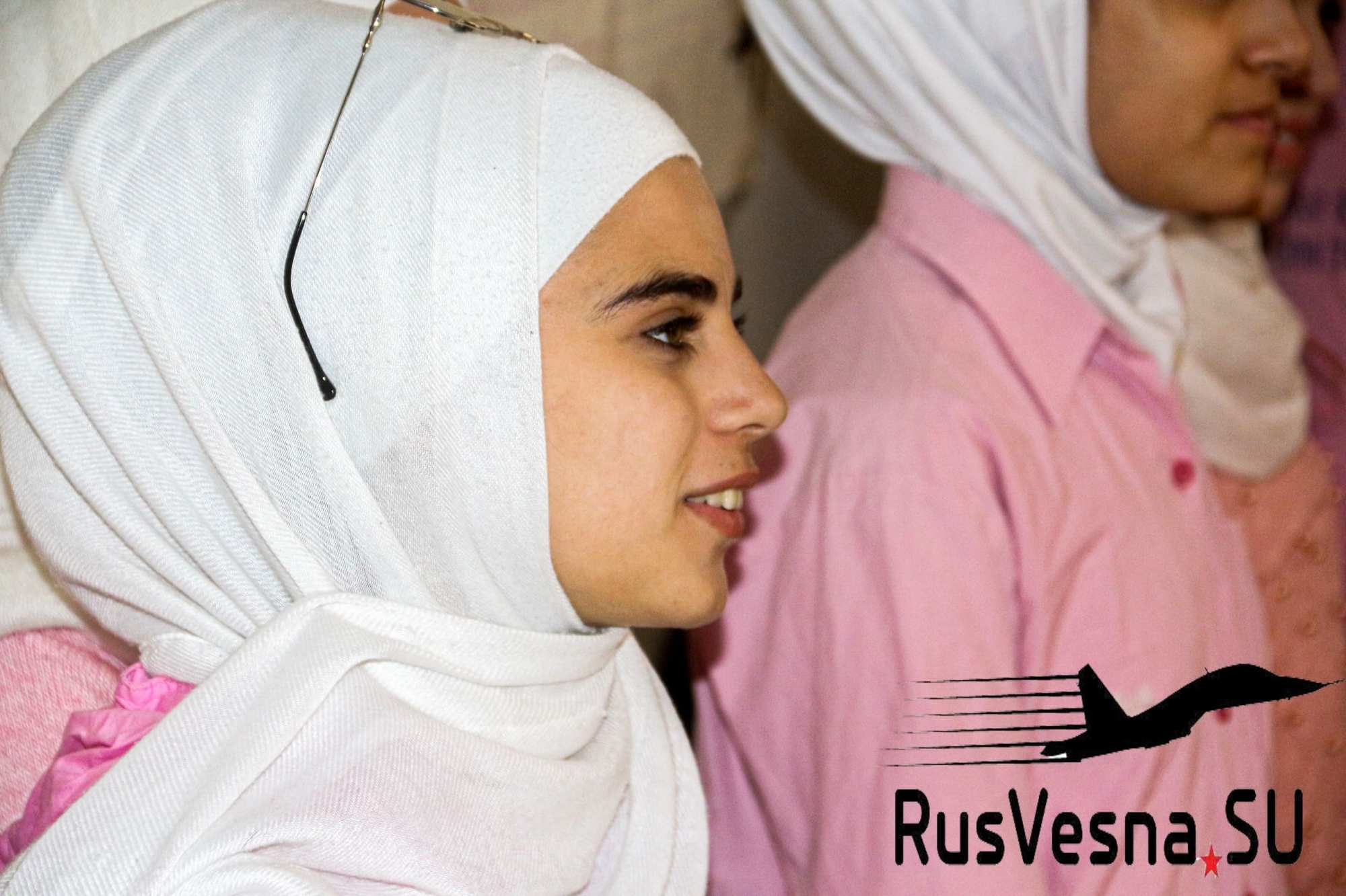 Так, офицеры российского Центра по примирению враждующих сторон вместе с представителями Общественного фонда имени Героя России Ахмата Кадырова посетили женскую среднюю школу «Наблюс» в районе Могамбо города Алеппо, где российские офицеры подарили учащимся учебники русского языка.