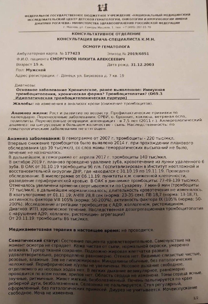 Помимо этих детей, на днях к нам обратилась заведующая отделением онкогематологии с просьбой о помощи Малыгину Руслану, 16-летнему пацану из Шахтерска — здесь, действительно, срочно. Редкое заболевание — апластическая анемия в тяжелой форме. Течение болезни очень быстрое. Нужен «Атгам» или «Тимоглобулин». Руслан в очень тяжёлом состоянии. Мы можем спасти ему жизнь.