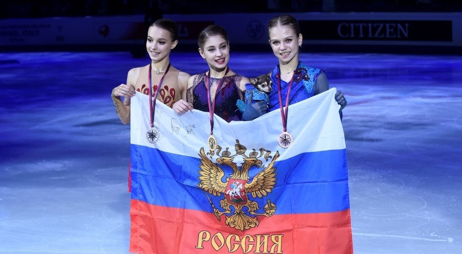 Три флага России над пьедесталом: наши фигуристки победили в финале Гран-при в Турине (ВИДЕО)