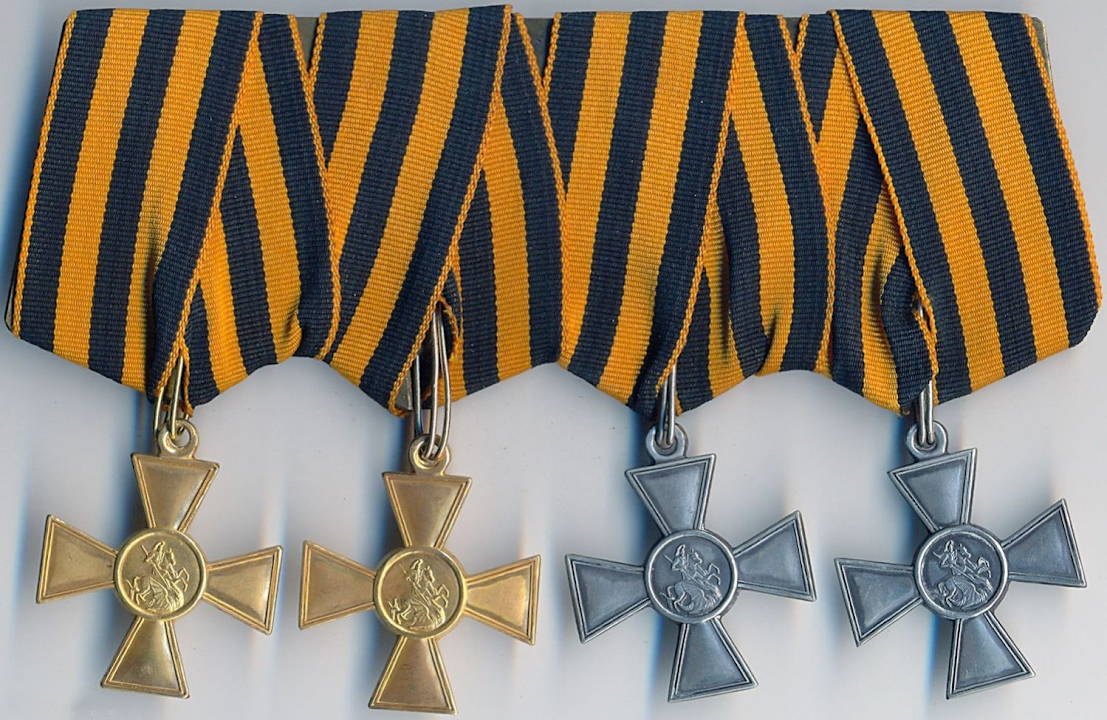 В 1807 году был учрежден знак отличия ордена Святого Георгия для награждения солдат и матросов. Эта награда представляла собой серебряный крест без эмали, носили его также на георгиевской черно-желтой ленте на груди.
