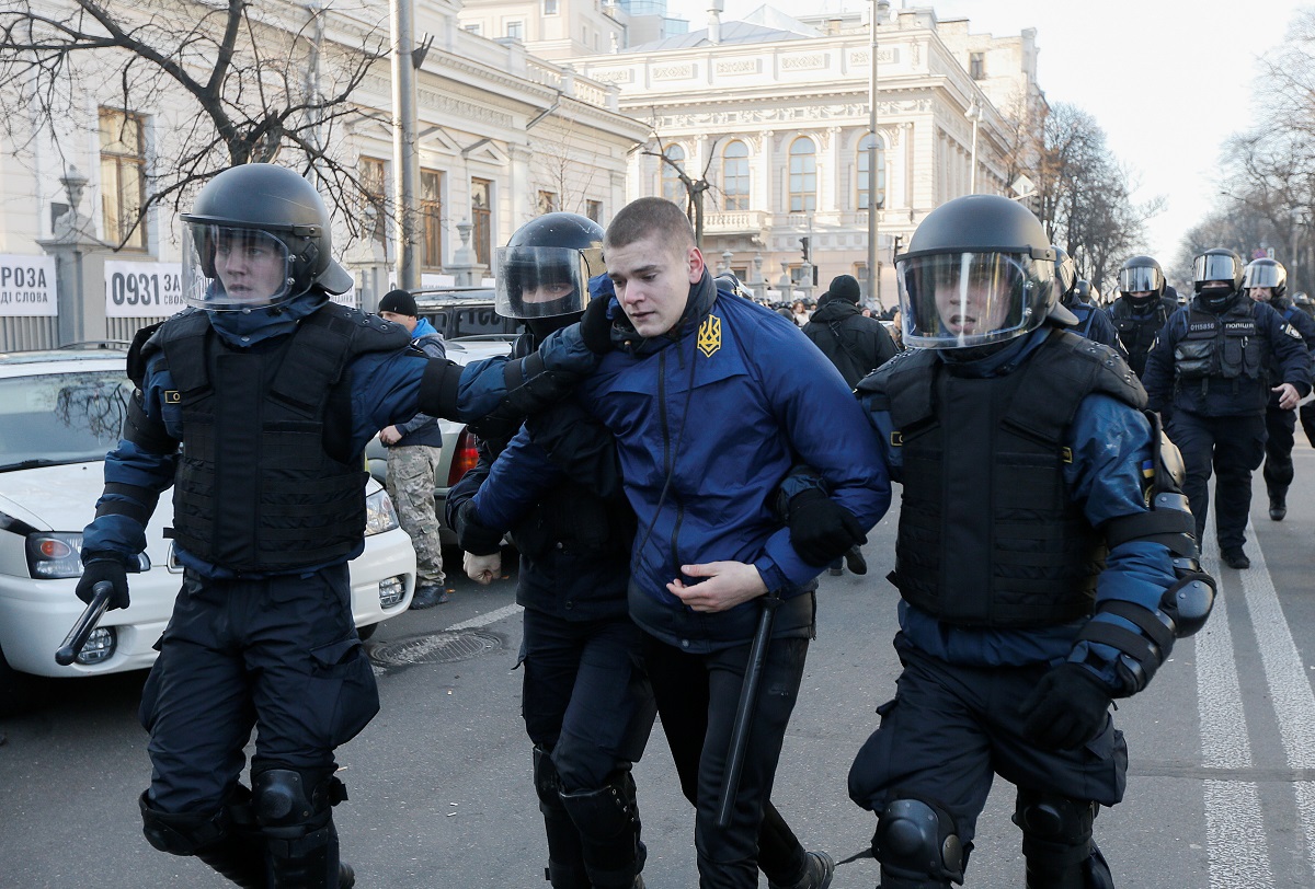 В Киеве полиция поставила на колени нацистов, пытавшихся сорвать лекцию российской блогерши (ФОТО, ВИДЕО)