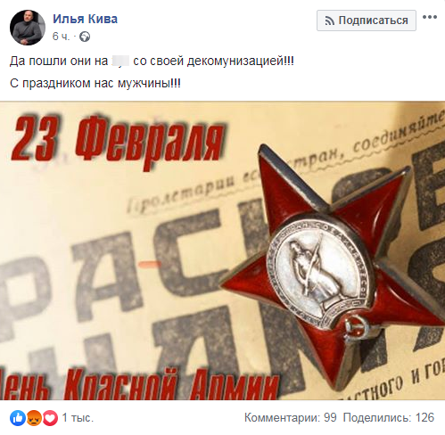 Кива матом послал декоммунизаторов и поздравил с 23 февраля (ФОТО)