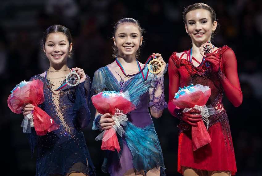 Валиева, ставшая в феврале чемпионкой России среди юниоров, теперь заняла первое место и на мировом первенстве, набрав по итогам обеих программ 227,30 балла. Второе место — у другой россиянки Дарьи Усачевой (207,74), третье досталось американке Алисе Лю (204,83).