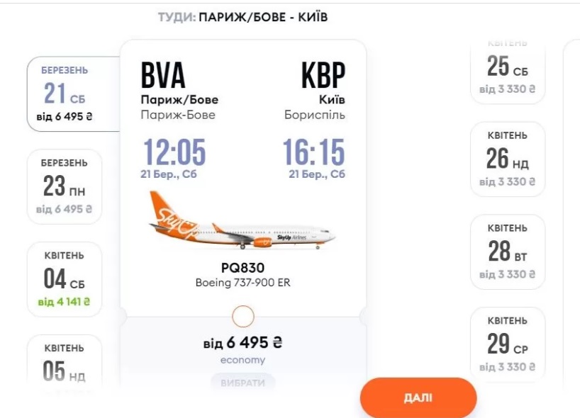 Так, например, тем, кто очень хочет в период карантина, 21 или 23 марта, улететь из Парижа, придётся выложить за билет от 6495 грн (18 921 руб.). При этом уже в апреле предлагается улететь за 3330 гривен (9701 руб.).