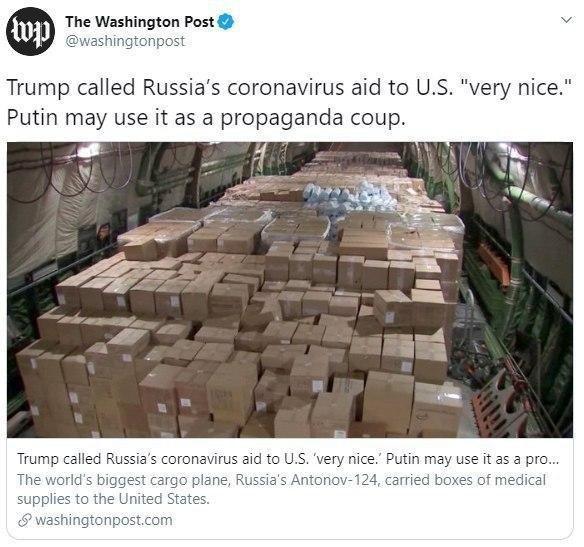 Washington Post: Трамп назвал помощь от России для борьбы с коронавирусом «очень хорошей». Путин может использовать это для пиара.