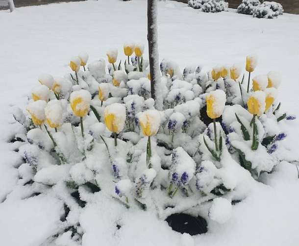 Так, снегопады прошли в Латвии, Литве, Польше и Беларуси. В частности, в Вильнюсе температура упала до -1 градуса, снег запорошил цветочные клумбы.