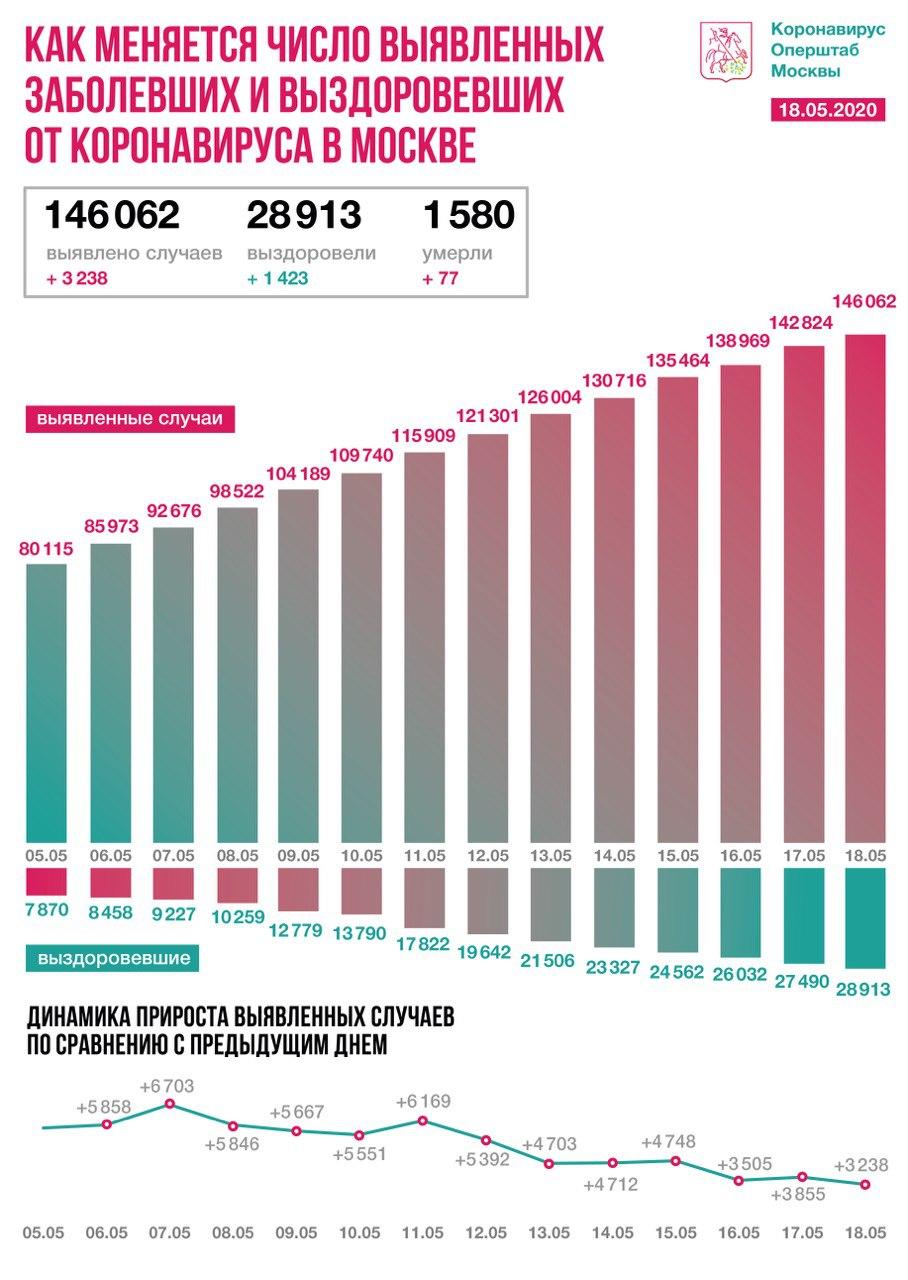 Этот показатель — наименьший с 1 мая, когда вновь заболевших было 7933 человека. С тех пор и до сегодняшнего дня ежедневный прирост составлял более 9-10 тысяч, а в три пиковых дня мая — более 11 тысяч.