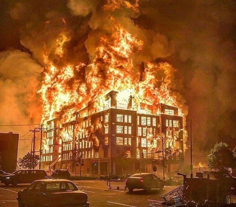 Как сообщала «Русская Весна», в первый день протестов в Миннеаполисе сожгли здание полицейского участка. Снимок пылающего здания, которое потом рухнуло, мгновенно разлетелся по всему миру и стал своего рода символом того, что происходит сейчас в США: вскоре правоохранители по всей стране начали становиться на колени перед протестующими.