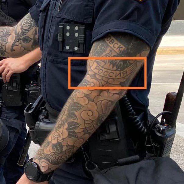 Пользователи социальной сети «Вконтакте» рассекретили личность американского копа с татуировкой «Россия» на руке, охранявшего общественный порядок во время одной из акций протеста в Техасе.