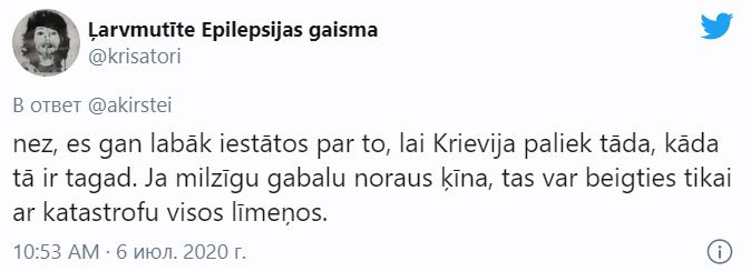 «Полный бред. Лучше бы начали думать о том, останется ли кто-то жить на окраинах Латвии после краевой реформы. Еще пару глупых реформ, и Латвия из страны превратится в территорию», — ответил автору некий Андрейс.