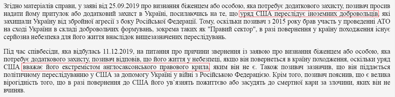 Все это дало украинским миграционной службе и админсудам основания считать, что истинным мотивом обращения Лэнга за защитой на Украине является желание избежать привлечения к уголовной ответственности в США.
