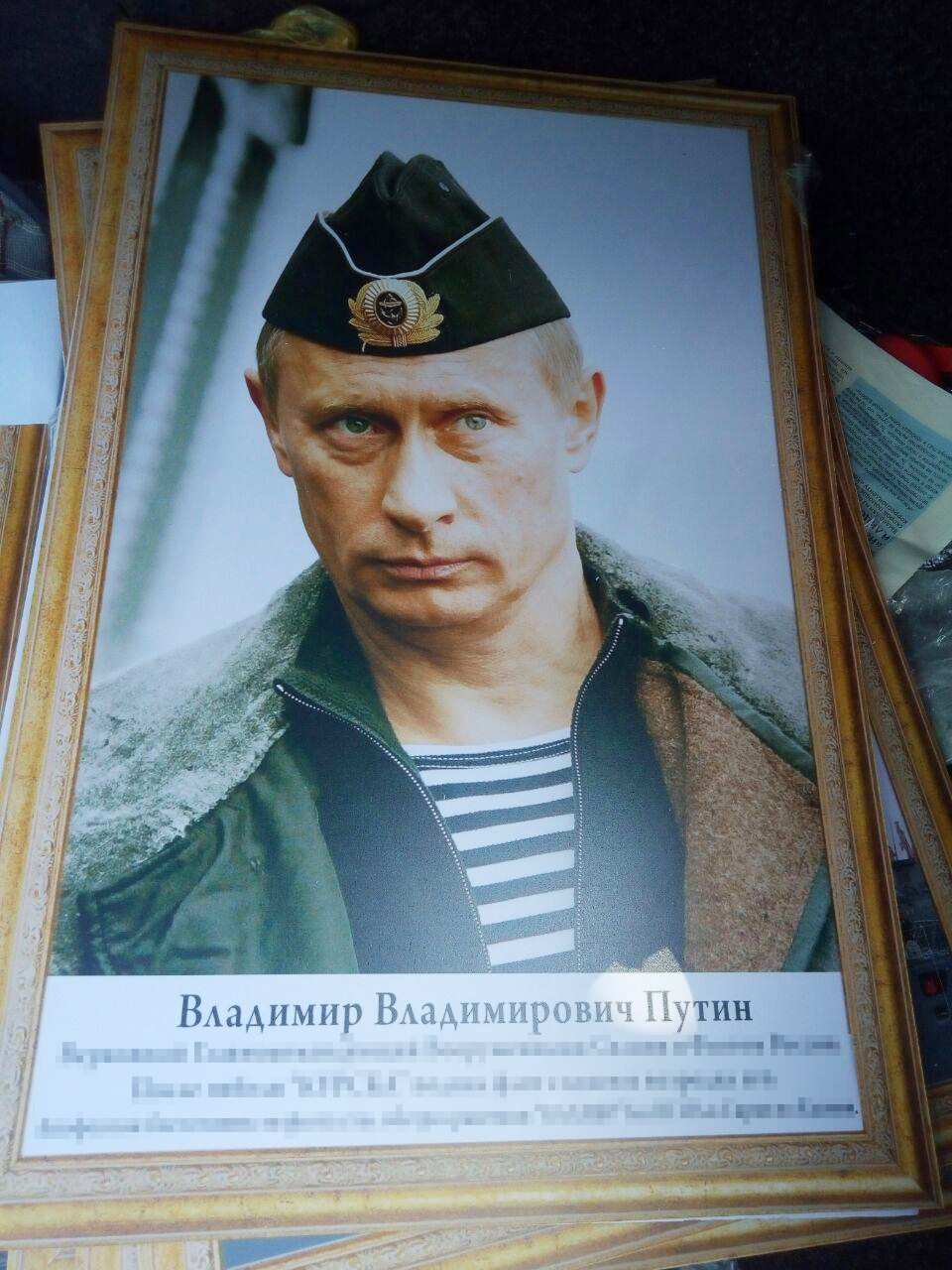 Так, в ходе проверки погранично-таможенная группа обнаружила в багажнике флаги с символикой СССР и гербом Российской Федерации, картины с символикой РФ, фотографии президента РФ Владимира Путина.