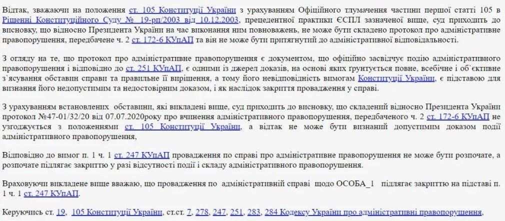 Дело было открыло 7 июля 2020 после обращения главы НАПК Александра Новикова. По решению суда, дело закрыли «в связи с отсутствием события и состава административного правонарушения».