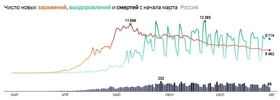 За последние сутки в России выявлено 5 462 новых случая заражения коронавирусом. Обще число заболевших в нашей стране достигло 845 443.