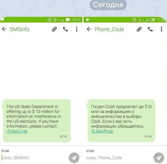 Сегодня утром многие россияне получили удивительные сообщения на свои мобильные: «Госдеп США предлагает до $10 млн за информацию о вмешательстве в выборы в США. Если у вас есть информация, обращайтесь».