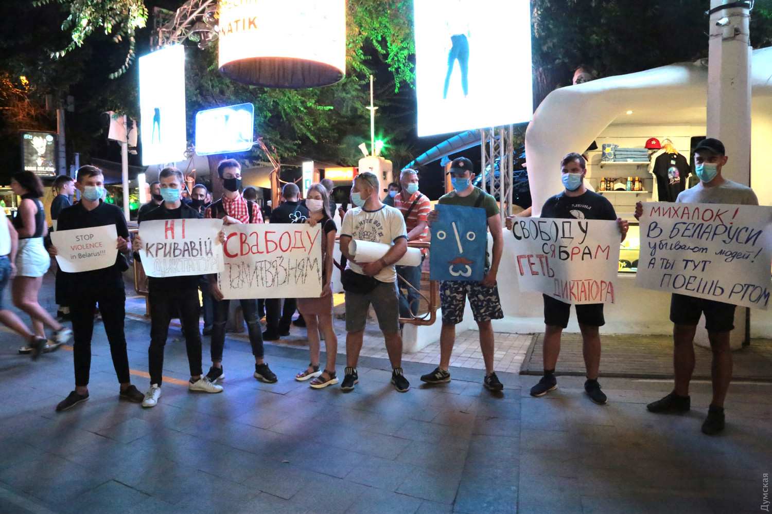 И вот вчера, на четвёртый вечер протестов, ночной клуб «Ибица» в одесской Аркадии, где выступал Михалок, пикетировали, пытаясь привлечь внимание «революционера». Около десятка человек собрались перед входом в ночной клуб, держа в руках плакаты: «Михалок! В Беларуси убивают людей, а ты поешь тут ртом», «Свободу сябрам! Геть диктатора!», «Свободу політв’язням», «Ні — кривавій диктатурі» и «Stop violence in Belarus».