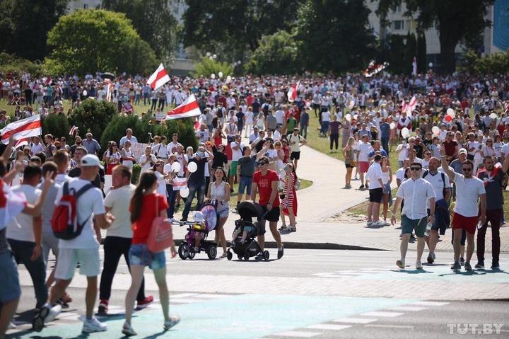 Государственное информационное агентство БелТА, которое не транслировало сегодняшнее обращение Лукашенко к народу, подробно освещает протестную акцию у стелы.