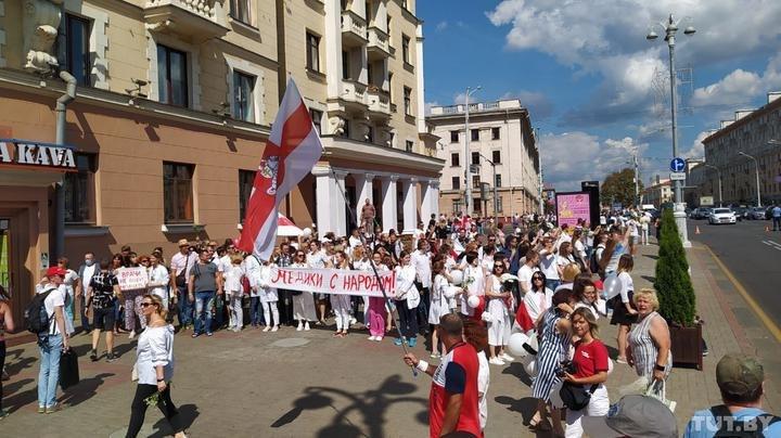 Люди активно собираются и на другой митинг — против Лукашенко. Пока на Немигу, а оттуда пойдут маршем по центральным улицам.