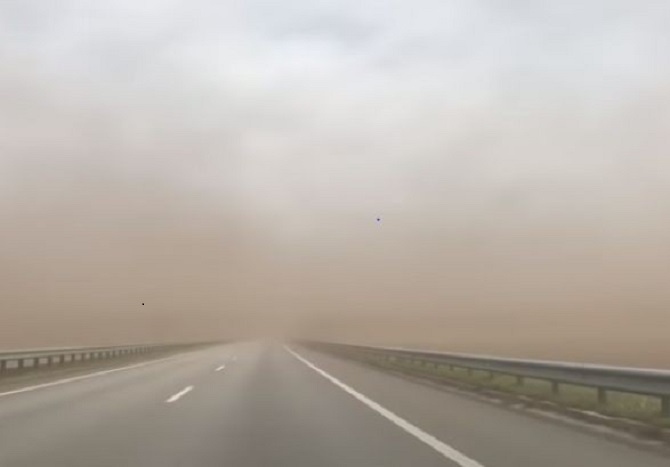 Донбасс накрыла пылевая буря: вчера весь день небо над Республикой было затянуто жёлтой мглой и даже в час дня солнечный свет сквозь неё не пробивался.
