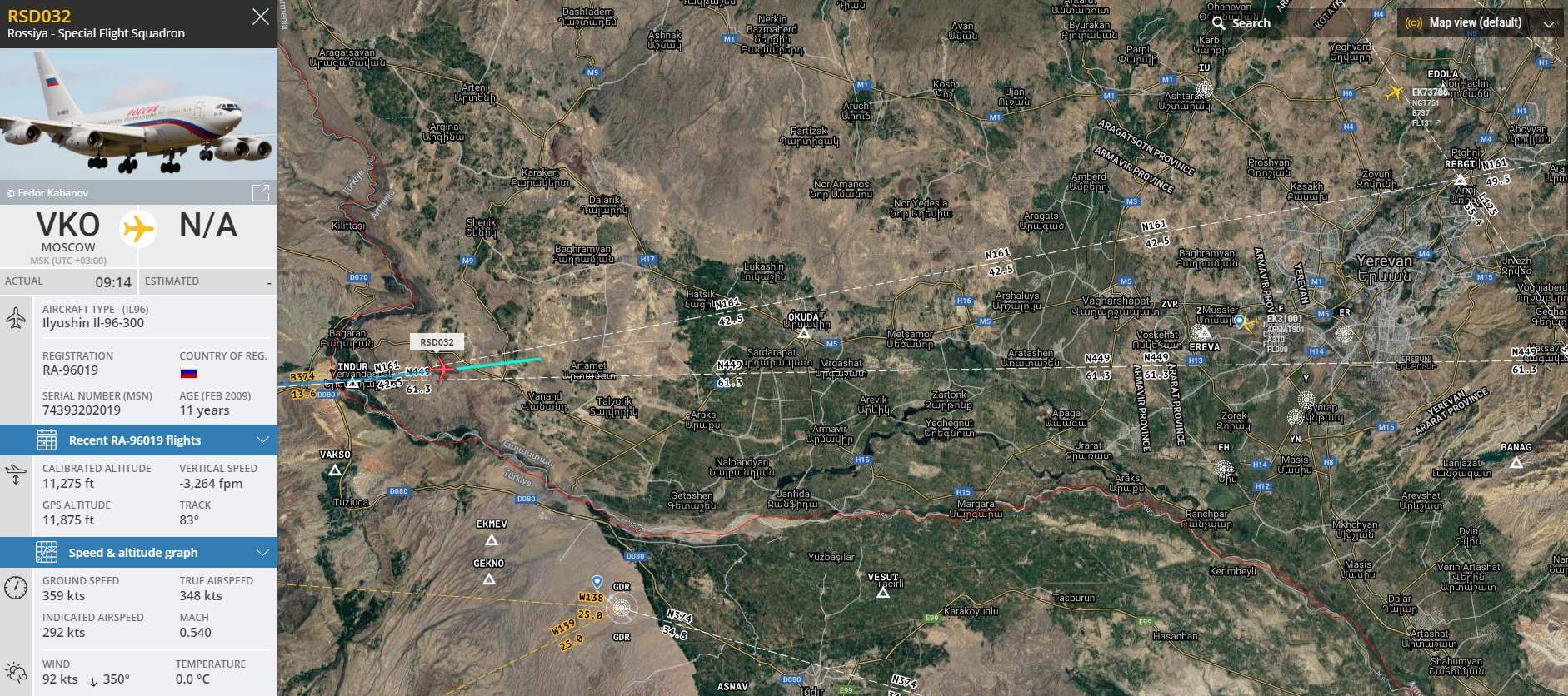 Судя по данным программы Flight Radar, фиксирующей перемещения различных бортов по миру, он уже сел в Ереване.