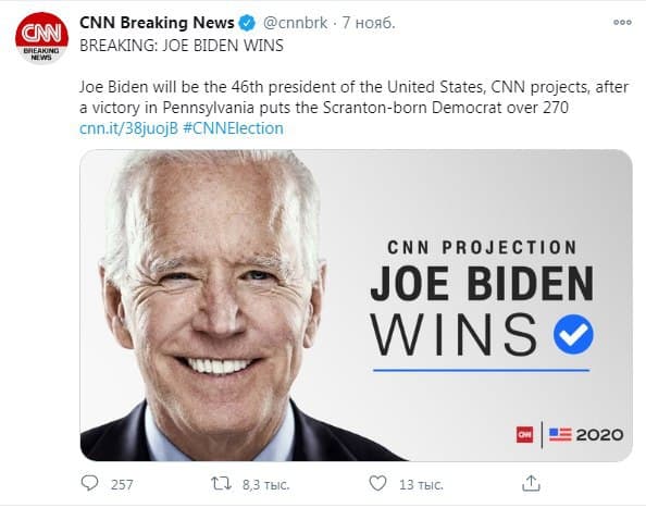 МОЛНИЯ: CNN назвала победителя президентской гонки в США