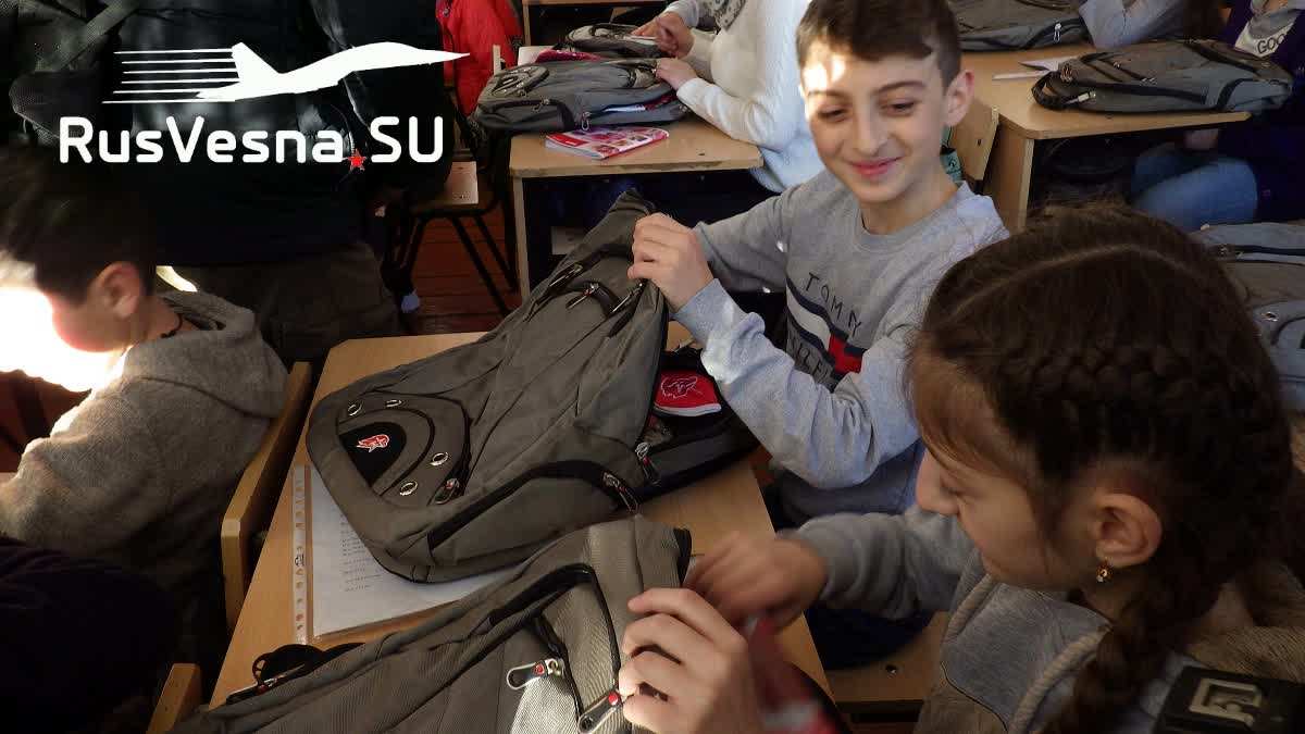Во время занятия по русскому языку в одном классе наши миротворцы провели гуманитарную акцию, ученикам раздали 30 рюкзаков с символикой «Юнармии» со школьными принадлежностями, а самой школе вручили телевизор. Дети остались довольны, а также поблагодарили российских миротворцев за возвращение к мирной и беззаботной жизни.