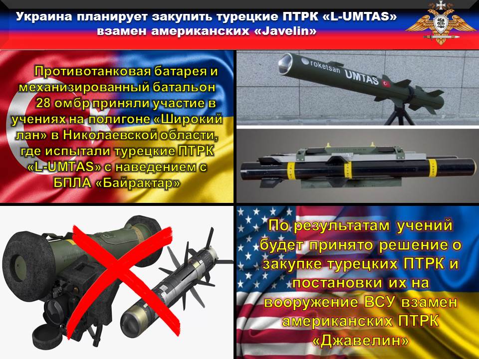 Важно отметить, что по данным из ГШ ВСУ, по результатам учений будет принято решение о закупке турецких ПТРК и постановки их на вооружение ВСУ. Кроме этого, прорабатывается вопрос об отказе от использования американских ПТРК «Джавелин» в пользу закупок турецких комплексов.