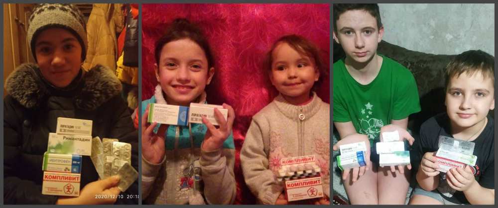 «Спасибо читателям сайта "Русская Весна" и Анастасии Михайловской за помощь в приобретении медикаментов для семей со сложным материальным положением из города Горловки. Передали лекарственные наборы на каждую семью. Большое спасибо, что помогли детям-сиротам и инвалидам. Сейчас им очень необходима помощь», — пишут волонтёры.