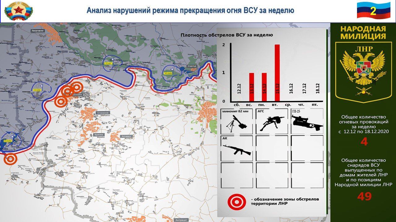 По данным наблюдателей представительства ЛНР в СЦКК, в период с 12 по 18 декабря нашими наблюдателями зафиксировано четыре огневых провокации.