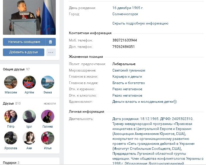 «Сомнения возникли сразу, как только я ознакомилась со страницей мужчины более подробно. В личных данных написано, что он тренер международной программы „Правовая инициатива в Центральной Европе и Евразии“ (Ассоциация Американских Юристов, США), консультант по организационному развитию проекта „Сеть гражданских действий в Украине“ (Институт Стабильных Сообществ, США), председатель Луганской областной группы медиации, член общества конфликтологов Украины с 1998 г.