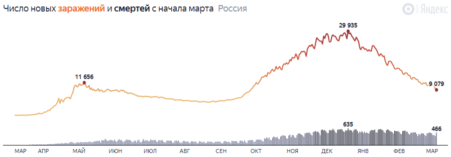 За последние сутки в России выявлено 9 079 новых случаев заражений коронавирусом — это наименьший суточный прирост в нашей стране со 2 октября 2020 года.