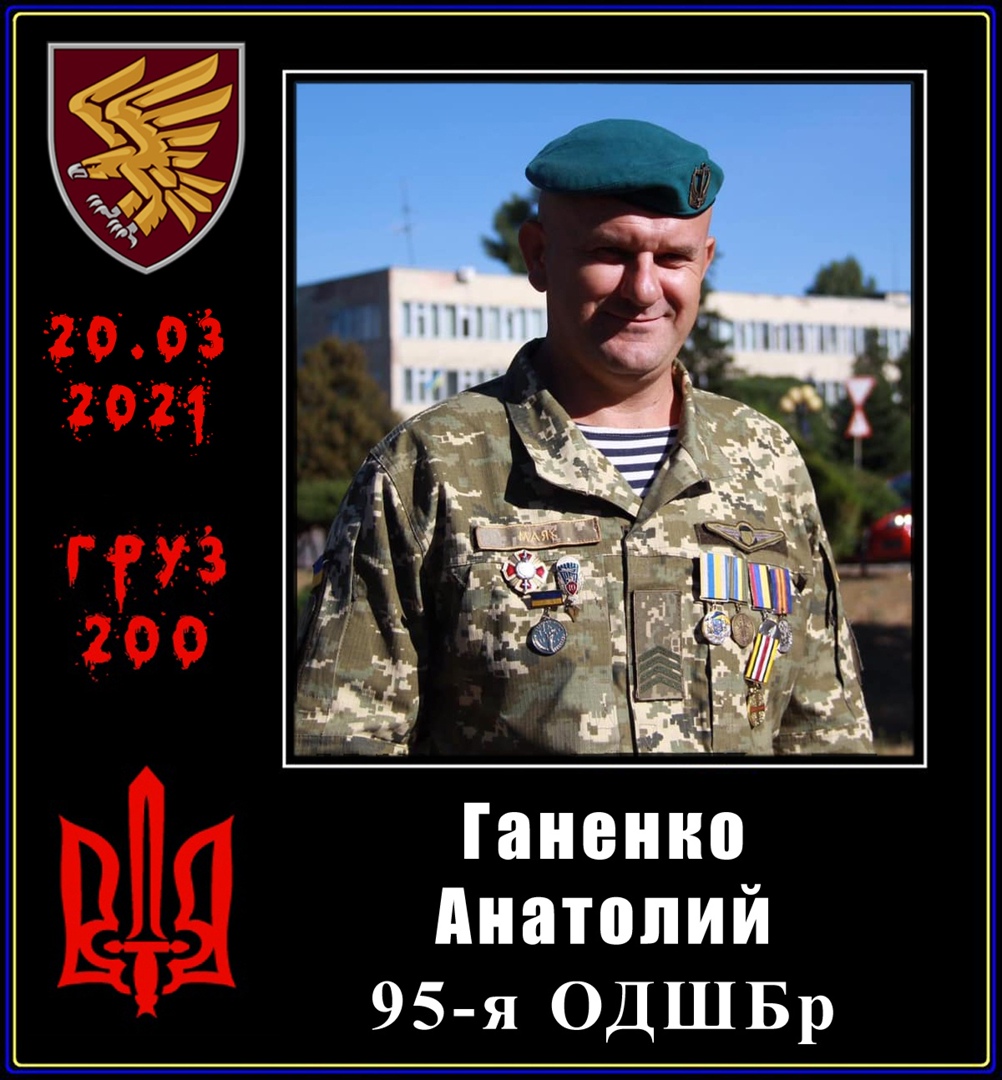 20.03.2021 — Ганенко Анатолий Александрович, 1986 г. р., участник «АТО» в составе 95 ОДШБр, 137 ОБМП.