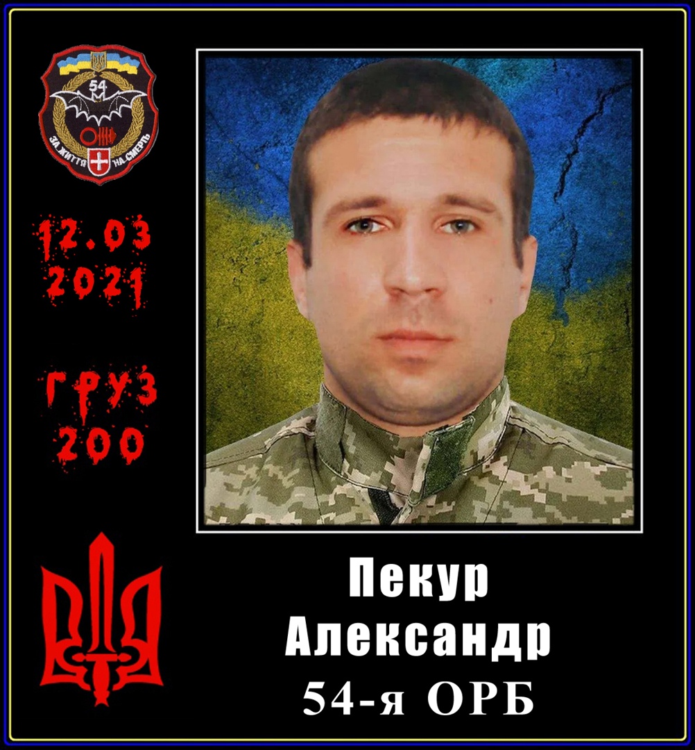 12.03.2021 — Пекур Александр Валентинович, 1990 г. р., военнослужащий 54 ОРБ. Свою расплату за жизни невинно убиенных мирных жителей Донбасса получил в виде пули (как пишут «захысныки» — пуля была «снайперской»).
