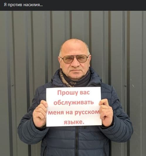 Мужчина сфотографировался с табличкой «Прошу вас обслуживать меня на русском языке» и дописал к посту всего три слова: «Я против насилия…» Вдумайтесь, для человека отказаться от языка, на котором он говорил всю жизнь, — насилие.
