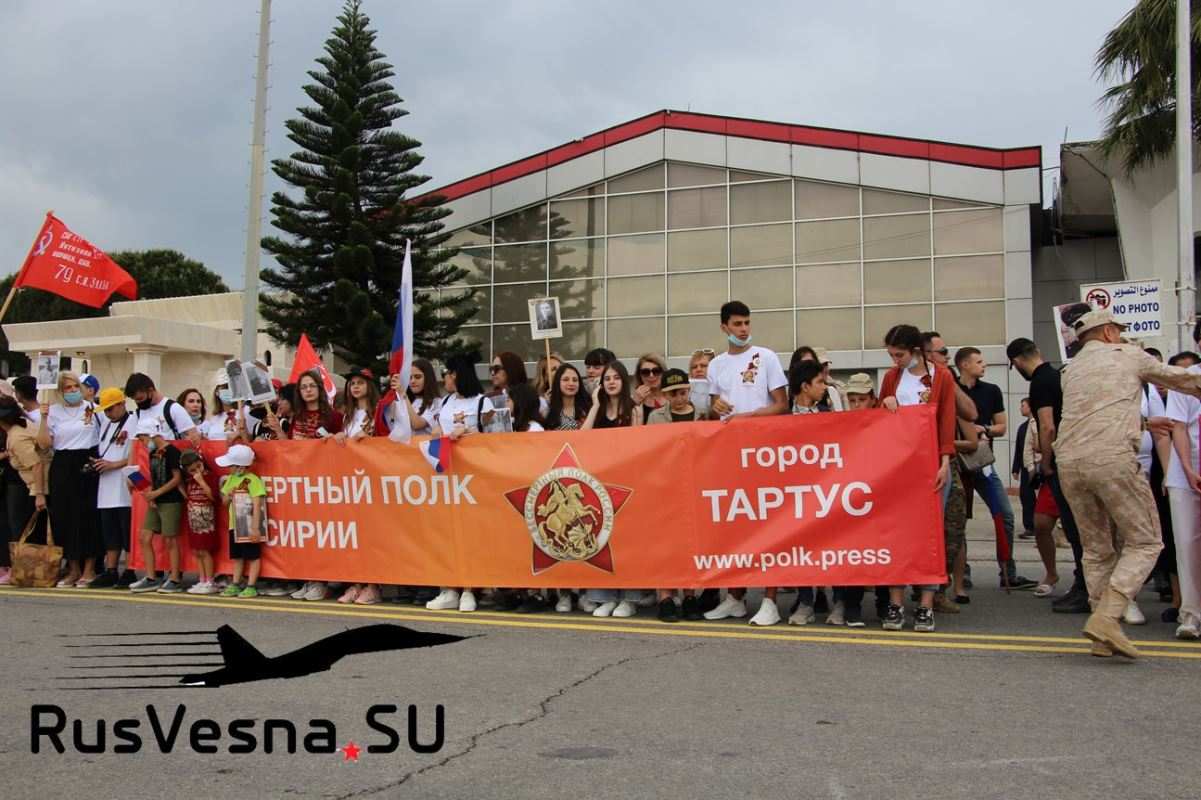 В День Победы на авиабазе «Хмеймим» в Сирии впервые прошла акция «Бессмертный полк». Более 200 представителей русской диаспоры в Сирии пронесли портреты своих родственников, участников Великой Отечественной войны.