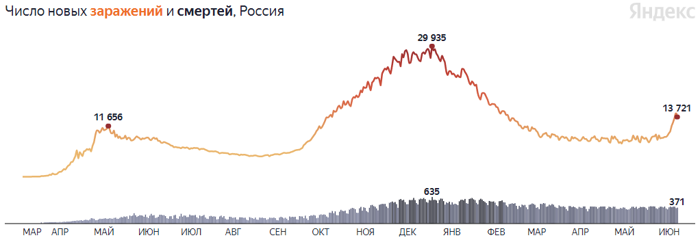 За сутки в России скончался 371 пациент с тяжёлой формой COVID-19, общее число жертв эпидемии коронавируса в нашей стране достигло 126 801.