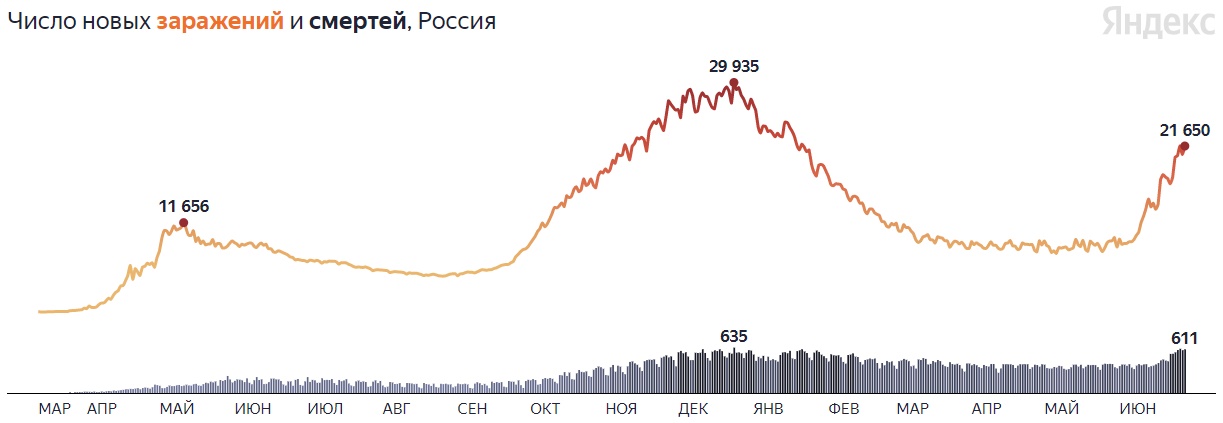 За последние сутки в России выявлено 21 650 новых случаев заражения коронавирусом. Общее число заболевших за всё время с начала эпидемии в нашей стране достигло 5 472 941.