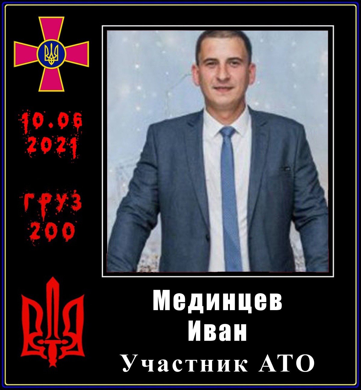 10.06.2021 — Мединцев Иван, 1978 г. р., участник «АТО». Свою расплату за жизни невинно убиенных мирных жителей Донбасса получил в виде смерти от тяжелой болезни. На родине «героя и защитника незалежной» в Ковеле Волынской области остались жена и дети.