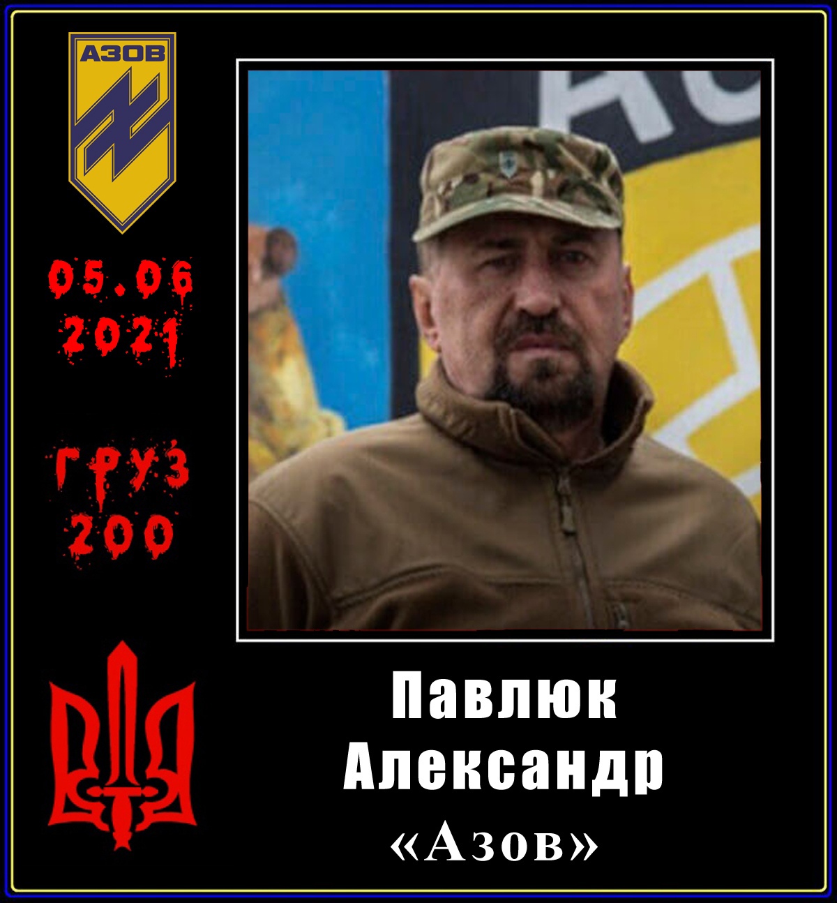 05.06.2021 — Павлюк Александр Николаевич, 1963 г. р., участник «АТО» в составе националистического военного формирования «Азов». С 2014 года добровольно отправился в зону «АТО»/«ООС», где за деньги истреблял мирное население Донбасса.