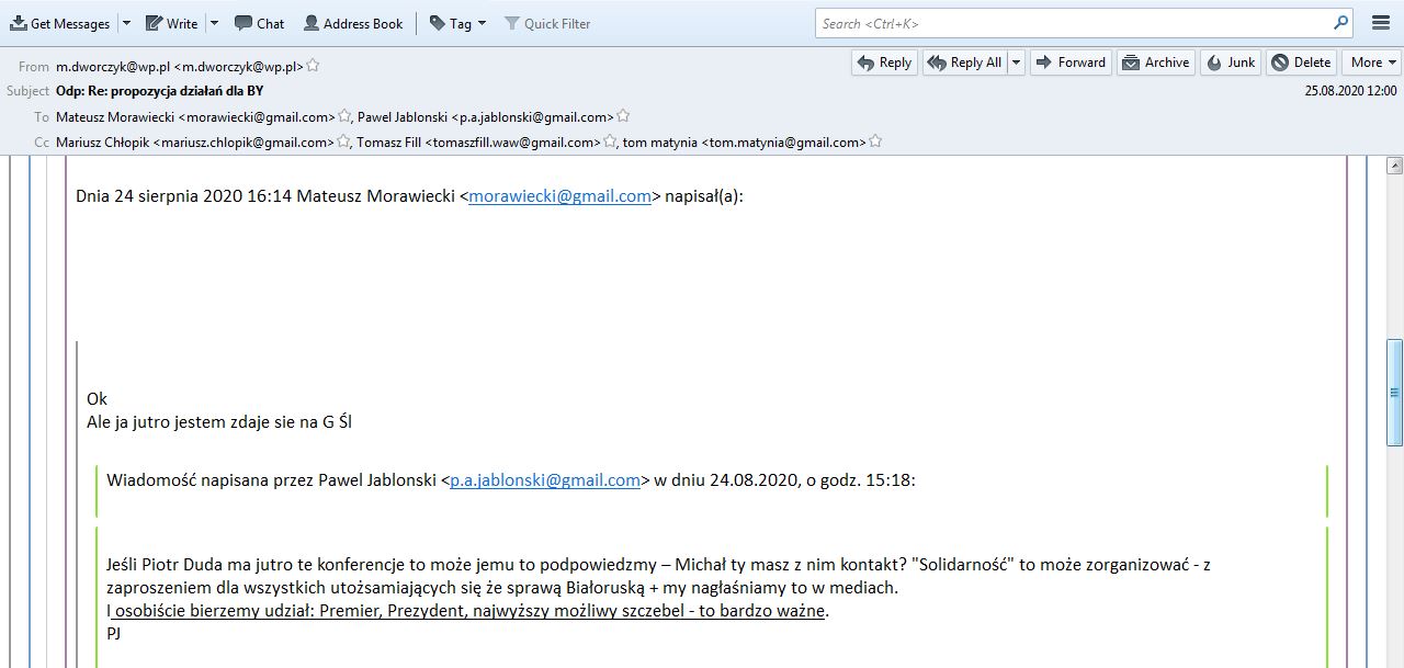 24 августа 2020 г. 07:35 Павел Яблоньский пишет Моравецкому: