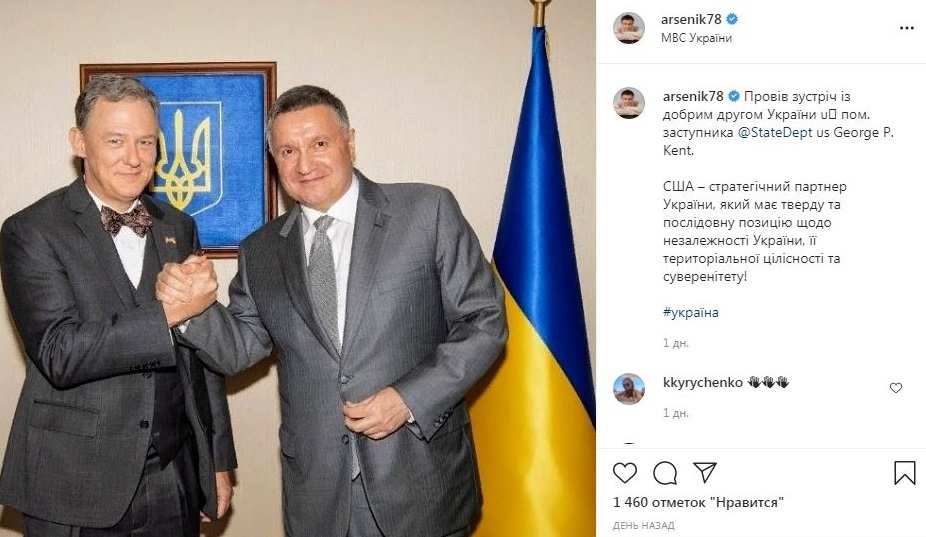 Важный факт — произошло это вскоре после того, как Аваков разместил фото с новым главой посольства США в Украине Джорджем Кентом. И сделал это первым среди всех украинских чиновников.