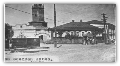 Здание земской школы в центре посада Климов Новозыбковского уезда в начале ХХ века