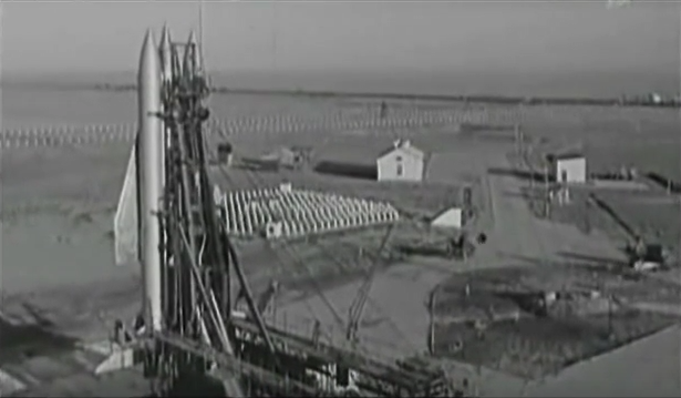 Главный конструктор Н.С. Черняков руководит первым пуском крылатой ракеты «Буря» на полигоне Владимировка
