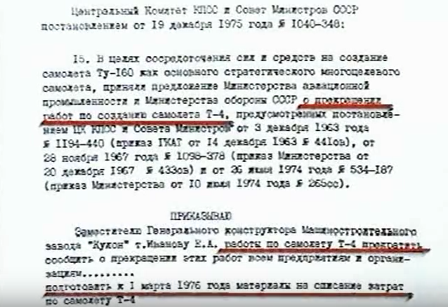 Кроме того, Т-4 попал на острие политических баталий и закулисных игр И. С. Хрущева, П. В. Дементьева и А. Н. Туполева, став их разменной картой с проектом самолета Ту-160.