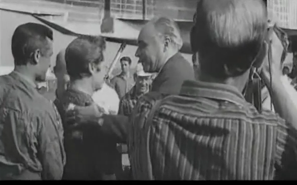 Н. С. Черняков приветствует лётчиков-испытателей Владимира Ильюшина и Николая Алфёрова