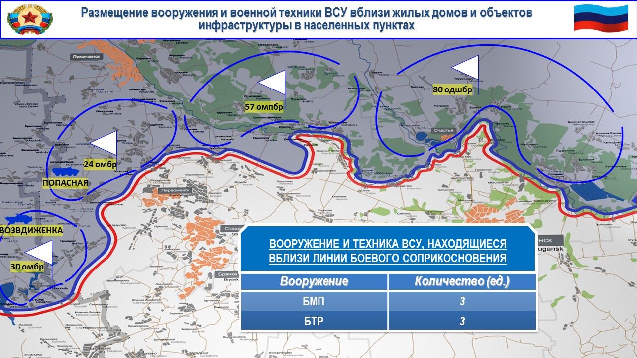 В жилом районе н.п. Попасная отмечено нахождение трех бронетранспортёров МТ-ЛБ, принадлежащих 24 бригаде ВСУ.